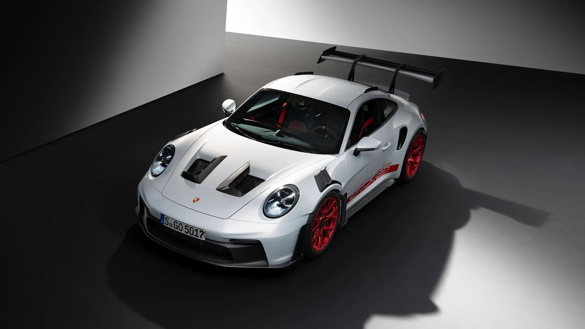 There are sports cars, and then there is the 992 GT3 RS. Presented here in the launch color Arctic Grey with contrasting Pyro Red magnesium wheels, this machine is a study in airflow.